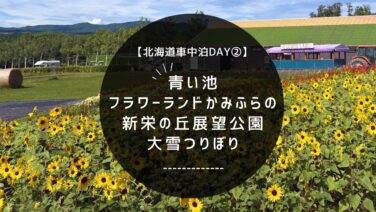 北海道車中泊②|朝いち青い池&フラワーランドかみふらの、大雪つりぼりと町営浴場